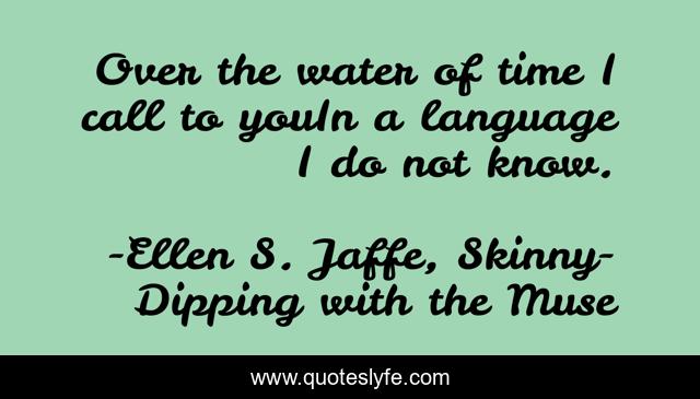 This page presents the quote "Over the water of time I call to youIn a language I do not know.". Author of this quote is Ellen S. Jaffe, Skinny-Dipping with the Muse. This quote is about grandmother, poetry,.