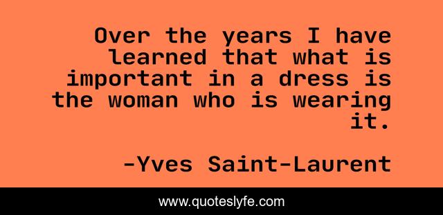 This page presents the quote "Over the years I have learned that what is important in a dress is the woman who is wearing it.". Author of this quote is Yves Saint-Laurent. This quote is about individuality, fashion, dresses, women,.