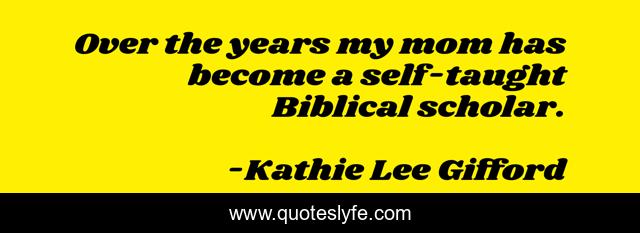 This page presents the quote "Over the years my mom has become a self-taught Biblical scholar.". Author of this quote is Kathie Lee Gifford. This quote is about become, scholar, years,.