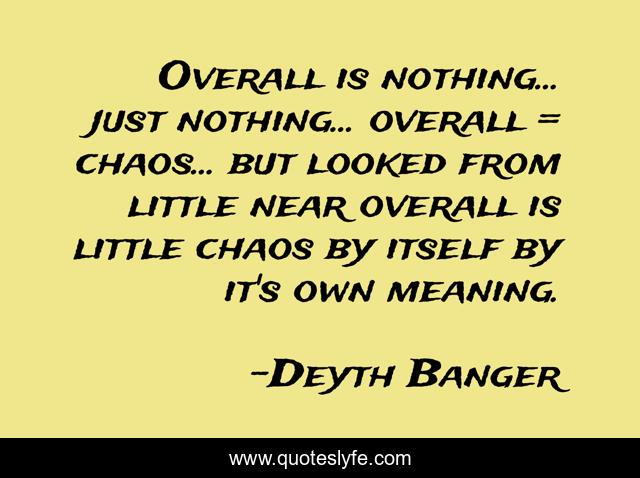 "Deyth Banger Quotes." Quoteslyfe.com, 2025. Fri. 05 Dec. 2025. <https://www.quoteslyfe.com/quote/Overall-is-nothing-just-nothing-overall-chaos-258415>.