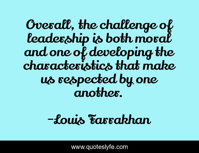 This page presents the quote "Overall, the challenge of leadership is both moral and one of developing the characteristics that make us respected by one another.". Author of this quote is Louis Farrakhan. This quote is about challenge, moral, us,.