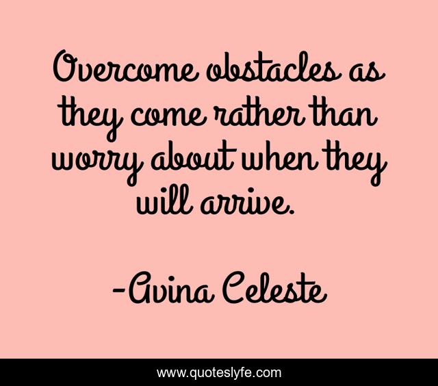 This page presents the quote "Overcome obstacles as they come rather than worry about when they will arrive.". Author of this quote is Avina Celeste. This quote is about confidence, obstacles, positive, motivational, future, optimistic, inspirational, enthusiasm, worry,.