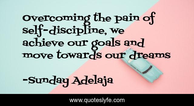 This page presents the quote "Overcoming the pain of self-discipline, we achieve our goals and move towards our dreams". Author of this quote is Sunday Adelaja. This quote is about pain, achievement, goals, greatness, self-discipline, dreams,.