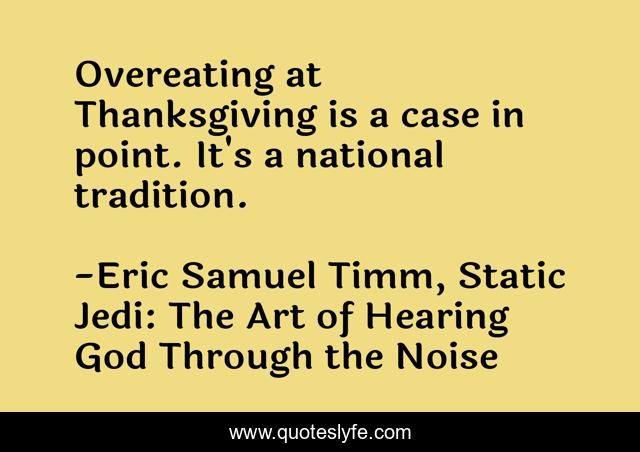 "Eric Samuel Timm, Static Jedi: The Art of Hearing God Through the Noise Quotes." Quoteslyfe.com, 2025. Fri. 05 Dec. 2025. <https://www.quoteslyfe.com/quote/Overeating-at-Thanksgiving-is-a-case-in-168307>.