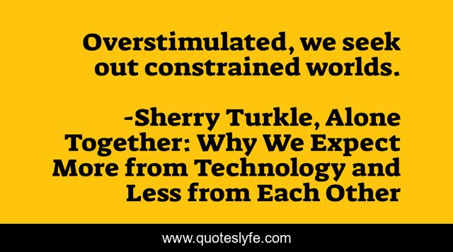 "Sherry Turkle, Alone Together: Why We Expect More from Technology and Less from Each Other Quotes." Quoteslyfe.com, 2025. Fri. 05 Dec. 2025. <https://www.quoteslyfe.com/quote/Overstimulated-we-seek-out-constrained-worlds-114859>.