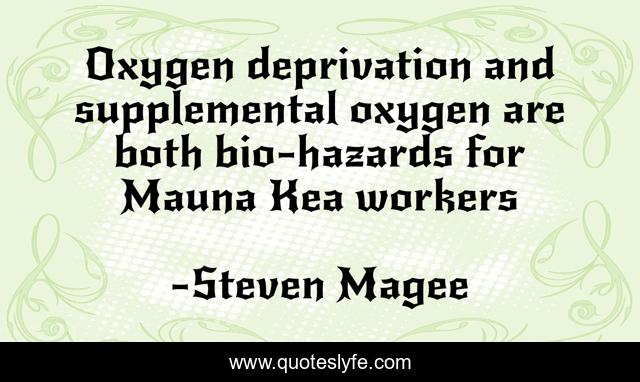 "Steven Magee Quotes." Quoteslyfe.com, 2025. Mon. 08 Dec. 2025. <https://www.quoteslyfe.com/quote/Oxygen-deprivation-and-supplemental-oxygen-are-both-249992>.