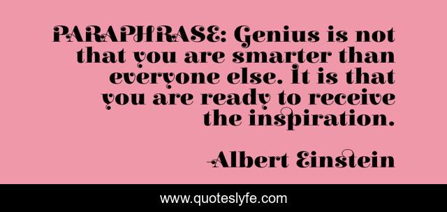 This page presents the quote "PARAPHRASE: Genius is not that you are smarter than everyone else. It is that you are ready to receive the inspiration.". Author of this quote is Albert Einstein. This quote is about self-criticism, genius, humility, openness, pride, inspiration,.
