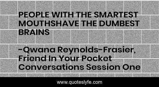 "Qwana Reynolds-Frasier, Friend In Your Pocket Conversations Session One Quotes." Quoteslyfe.com, 2025. Fri. 05 Dec. 2025. <https://www.quoteslyfe.com/quote/PEOPLE-WITH-THE-SMARTEST-MOUTHSHAVE-THE-DUMBEST-79148>.