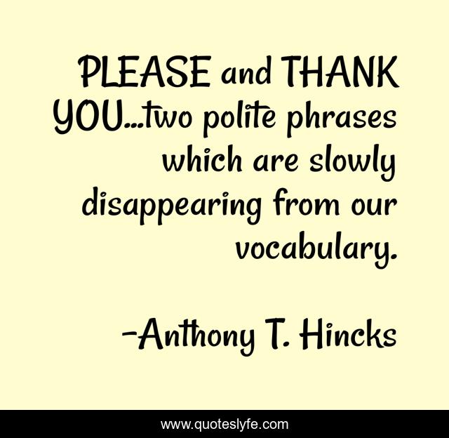 "Anthony T. Hincks Quotes." Quoteslyfe.com, 2025. Sun. 07 Dec. 2025. <https://www.quoteslyfe.com/quote/PLEASE-and-THANK-YOU-two-polite-phrases-184935>.