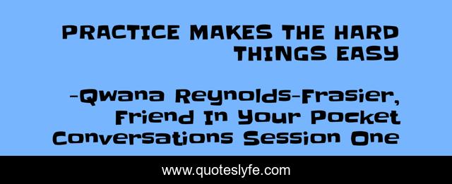 "Qwana Reynolds-Frasier, Friend In Your Pocket Conversations Session One Quotes." Quoteslyfe.com, 2025. Mon. 08 Dec. 2025. <https://www.quoteslyfe.com/quote/PRACTICE-MAKES-THE-HARD-THINGS-EASY-14641>.