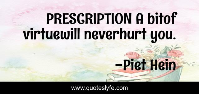"Piet Hein Quotes." Quoteslyfe.com, 2025. Fri. 05 Dec. 2025. <https://www.quoteslyfe.com/quote/PRESCRIPTION-A-bitof-virtuewill-neverhurt-you-231290>.