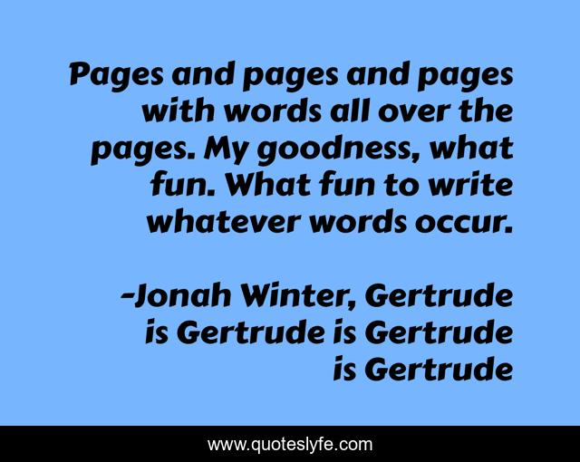 This page presents the quote "Pages and pages and pages with words all over the pages. My goodness, what fun. What fun to write whatever words occur.". Author of this quote is Jonah Winter, Gertrude is Gertrude is Gertrude is Gertrude. .