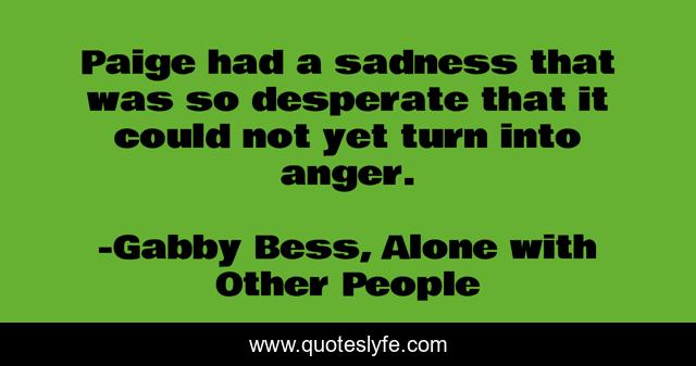 This page presents the quote "Paige had a sadness that was so desperate that it could not yet turn into anger.". Author of this quote is Gabby Bess, Alone with Other People. .