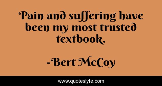 This page presents the quote "Pain and suffering have been my most trusted textbook.". Author of this quote is Bert McCoy. This quote is about school, proper-education, textbooks, bert-mccoy, learning, growing, education,.