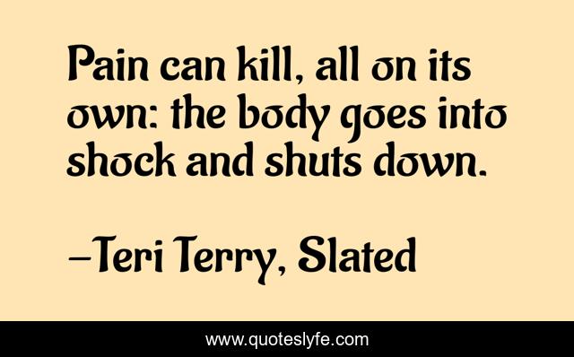 This page presents the quote "Pain can kill, all on its own: the body goes into shock and shuts down.". Author of this quote is Teri Terry, Slated. This quote is about kill, death, pain, shock,.
