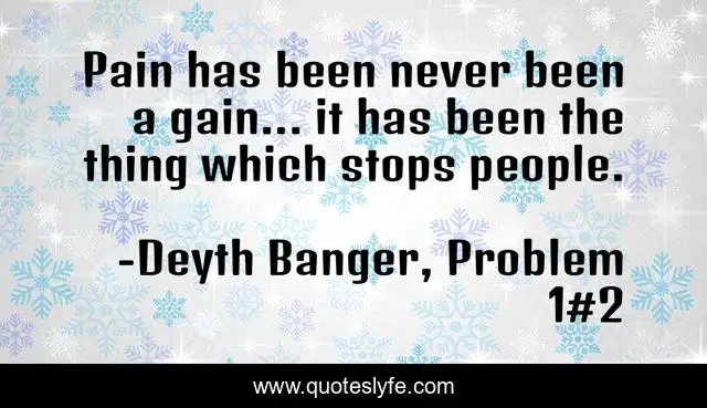 "Deyth Banger, Problem 1#2 Quotes." Quoteslyfe.com, 2025. Mon. 08 Dec. 2025. <https://www.quoteslyfe.com/quote/Pain-has-been-never-been-a-gain-75882>.