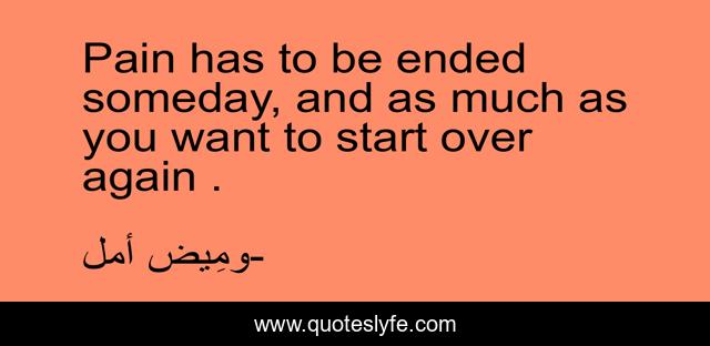 This page presents the quote "Pain has to be ended someday, and as much as you want to start over again .". Author of this quote is ومِيض أمل. .