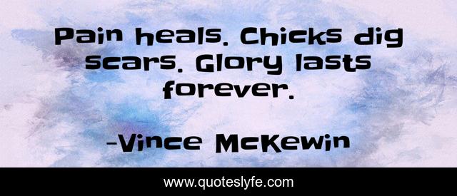 "Vince McKewin Quotes." Quoteslyfe.com, 2025. Sun. 07 Dec. 2025. <https://www.quoteslyfe.com/quote/Pain-heals-Chicks-dig-scars-Glory-lasts-75640>.