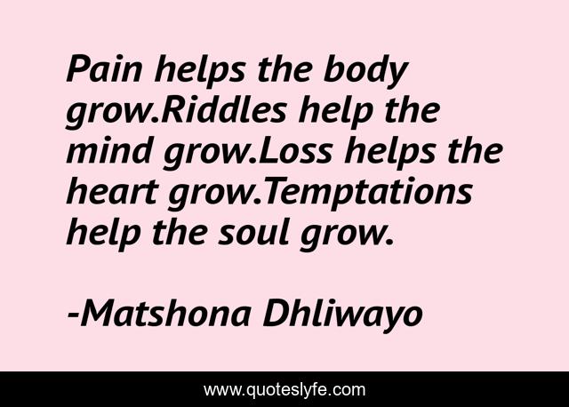 Pain helps the body grow.Riddles help the mind grow.Loss helps the heart grow.Temptations help the soul grow.