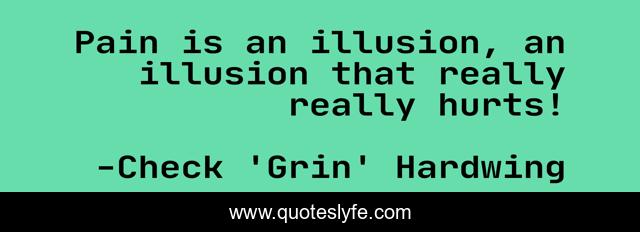 This page presents the quote "Pain is an illusion, an illusion that really really hurts!". Author of this quote is Check 'Grin' Hardwing. This quote is about pain, illusion,.