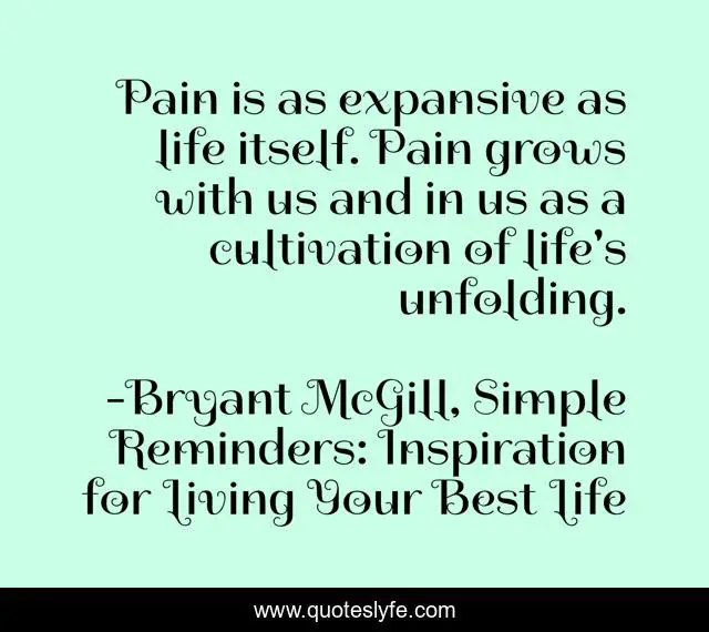 "Bryant McGill, Simple Reminders: Inspiration for Living Your Best Life Quotes." Quoteslyfe.com, 2025. Sat. 06 Dec. 2025. <https://www.quoteslyfe.com/quote/Pain-is-as-expansive-as-life-itself-140030>.