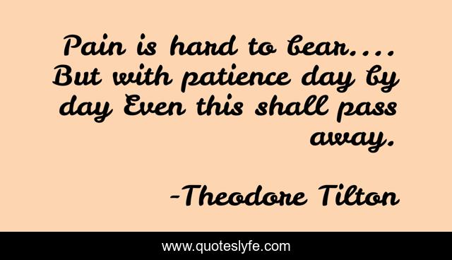 This page presents the quote "Pain is hard to bear.... But with patience day by day Even this shall pass away.". Author of this quote is Theodore Tilton. This quote is about days, difficult,.