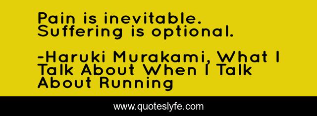 This page presents the quote "Pain is inevitable. Suffering is optional.". Author of this quote is Haruki Murakami, What I Talk About When I Talk About Running. This quote is about enthusiasm, running, inspirational,.