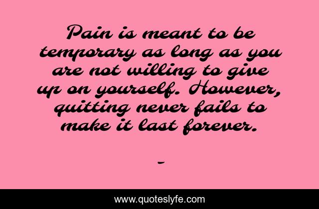Pain is meant to be temporary as long as you are not willing to give up on yourself. However, quitting never fails to make it last forever.