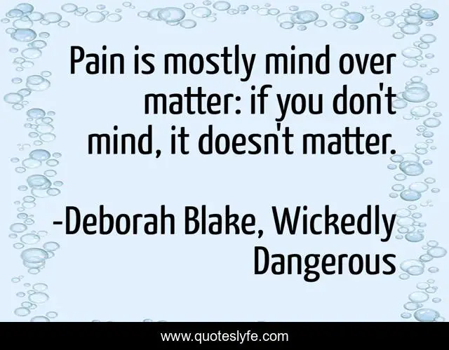 "Deborah Blake, Wickedly Dangerous Quotes." Quoteslyfe.com, 2025. Fri. 05 Dec. 2025. <https://www.quoteslyfe.com/quote/Pain-is-mostly-mind-over-matter-if-131921>.