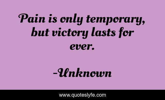 This page presents the quote "Pain is only temporary, but victory lasts for ever.". Author of this quote is Unknown. This quote is about positivity, victory, inspiration,.