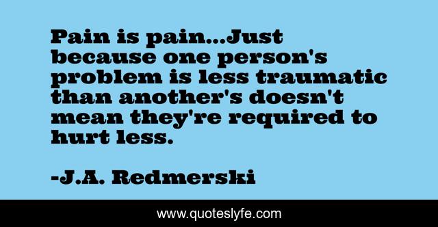 This page presents the quote "Pain is pain...Just because one person's problem is less traumatic than another's doesn't mean they're required to hurt less.". Author of this quote is J.A. Redmerski. This quote is about loss, pain, problems, hurt, sadness, sad,.