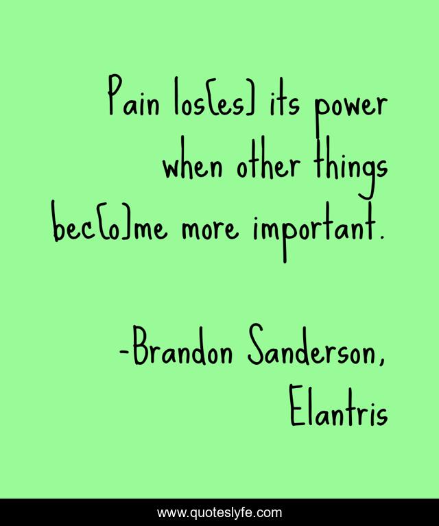 "Brandon Sanderson, Elantris Quotes." Quoteslyfe.com, 2025. Fri. 05 Dec. 2025. <https://www.quoteslyfe.com/quote/Pain-los-es-its-power-when-other-47141>.