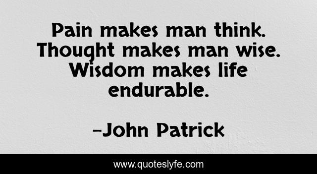 This page presents the quote "Pain makes man think. Thought makes man wise. Wisdom makes life endurable.". Author of this quote is John Patrick. .