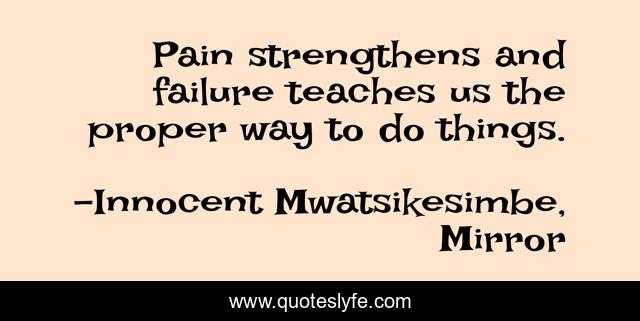 This page presents the quote "Pain strengthens and failure teaches us the proper way to do things.". Author of this quote is Innocent Mwatsikesimbe, Mirror. This quote is about enthusiasm, life, strength, pain, inspirational,.