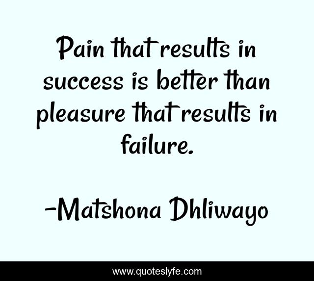 "Matshona Dhliwayo Quotes." Quoteslyfe.com, 2025. Fri. 05 Dec. 2025. <https://www.quoteslyfe.com/quote/Pain-that-results-in-success-is-better-57976>.