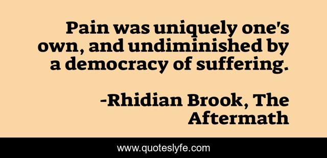 This page presents the quote "Pain was uniquely one's own, and undiminished by a democracy of suffering.". Author of this quote is Rhidian Brook, The Aftermath. .
