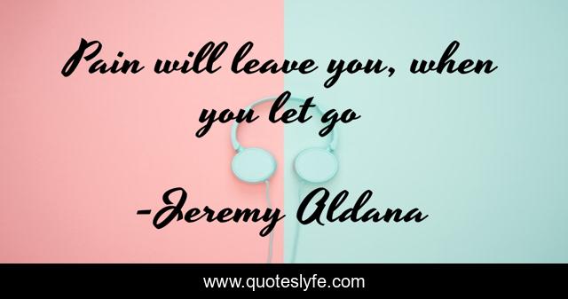 This page presents the quote "Pain will leave you, when you let go". Author of this quote is Jeremy Aldana. This quote is about letting-go, freedom, peace, pain,.