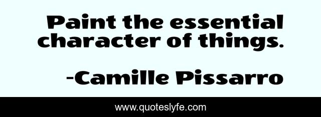 This page presents the quote "Paint the essential character of things.". Author of this quote is Camille Pissarro. This quote is about paint, character, things,.