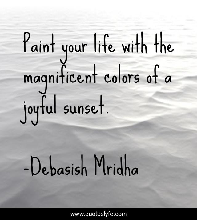This page presents the quote "Paint your life with the magnificent colors of a joyful sunset.". Author of this quote is Debasish Mridha. This quote is about quotes, appreciate-your-life, improve-your-life, philosophy, debasish-mridha, your-life, enjoy-a-sunset, debasish-mridha-md, inspirational,.