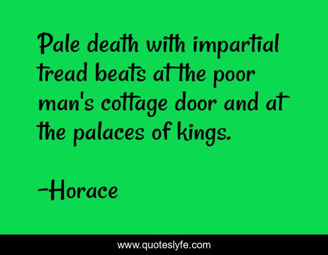 This page presents the quote "Pale death with impartial tread beats at the poor man's cottage door and at the palaces of kings.". Author of this quote is Horace. .