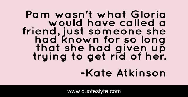 This page presents the quote "Pam wasn't what Gloria would have called a friend, just someone she had known for so long that she had given up trying to get rid of her.". Author of this quote is Kate Atkinson. .