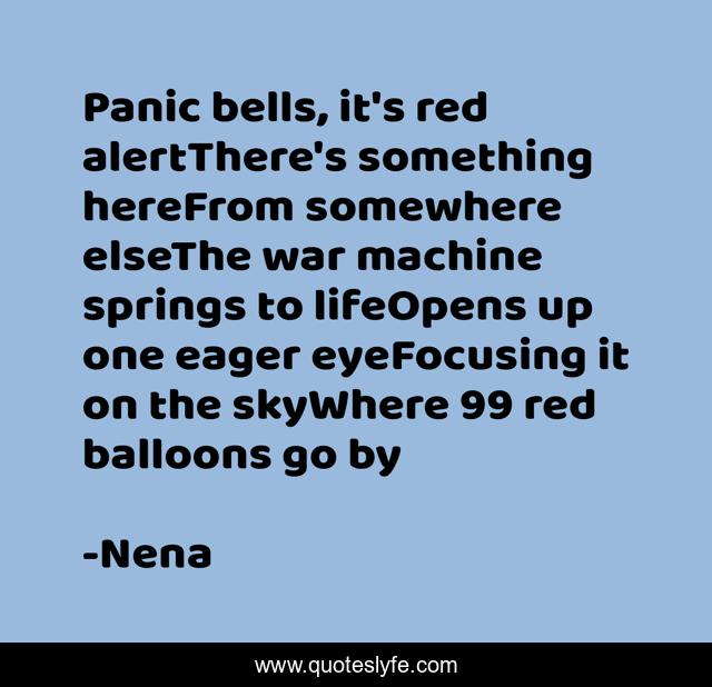 "Nena Quotes." Quoteslyfe.com, 2025. Mon. 08 Dec. 2025. <https://www.quoteslyfe.com/quote/Panic-bells-it-s-red-alertThere-s-52276>.