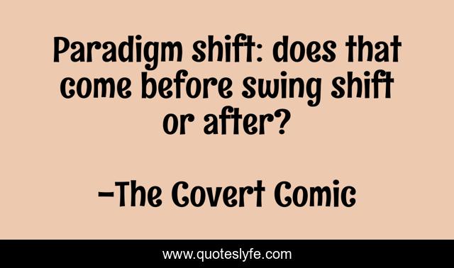 "The Covert Comic Quotes." Quoteslyfe.com, 2025. Fri. 05 Dec. 2025. <https://www.quoteslyfe.com/quote/Paradigm-shift-does-that-come-before-swing-205807>.