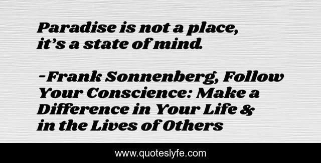 "Frank Sonnenberg, Follow Your Conscience: Make a Difference in Your Life & in the Lives of Others Quotes." Quoteslyfe.com, 2025. Fri. 05 Dec. 2025. <https://www.quoteslyfe.com/quote/Paradise-is-not-a-place-it-s-183761>.