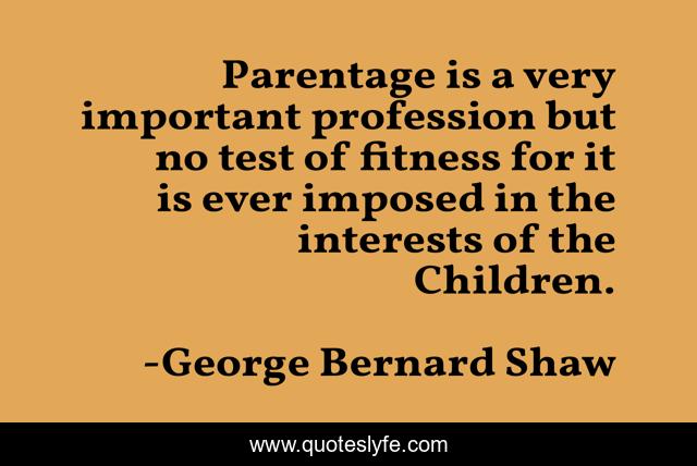 This page presents the quote "Parentage is a very important profession but no test of fitness for it is ever imposed in the interests of the Children.". Author of this quote is George Bernard Shaw. .