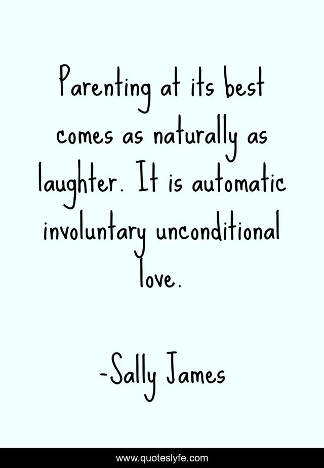 This page presents the quote "Parenting at its best comes as naturally as laughter. It is automatic involuntary unconditional love.". Author of this quote is Sally James. .