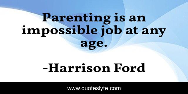 This page presents the quote "Parenting is an impossible job at any age.". Author of this quote is Harrison Ford. This quote is about impossible, age, job,.
