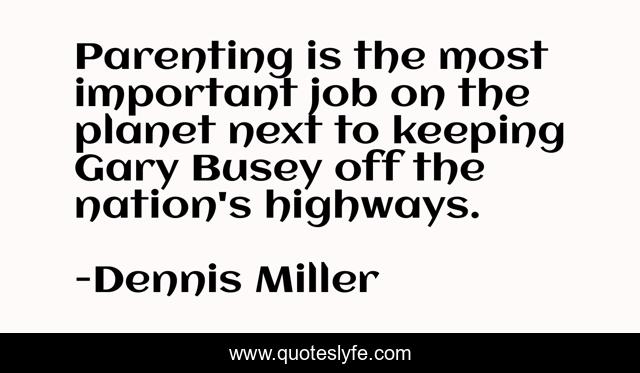 This page presents the quote "Parenting is the most important job on the planet next to keeping Gary Busey off the nation's highways.". Author of this quote is Dennis Miller. This quote is about job, nation,.