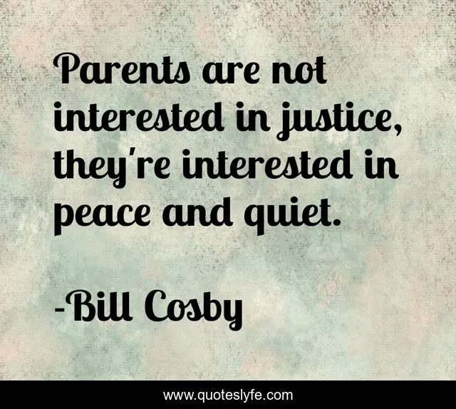 This page presents the quote "Parents are not interested in justice, they're interested in peace and quiet.". Author of this quote is Bill Cosby. .