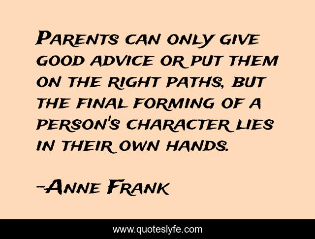 "Anne Frank Quotes." Quoteslyfe.com, 2025. Mon. 08 Dec. 2025. <https://www.quoteslyfe.com/quote/Parents-can-only-give-good-advice-or-3819>.